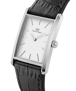 Với các cạnh hình học tinh tế và hai kích cỡ để lựa chọn, bộ sưu tập Bound của chúng tôi mang đến sự đối xứng hoàn hảo cho cổ tay bạn. Vỏ hình chữ nhật cong của chiếc đồng hồ bạc này có chiều rộng chính xác khớp với dây đeo da màu đen họa tiết da cá sấu – tạo nên mặt số liền mạch.