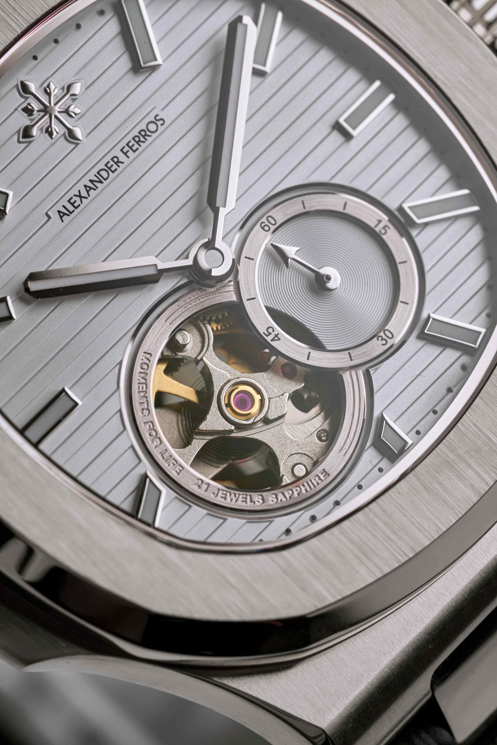 Alexander Ferros 6312 là sự kết hợp hài hòa giữa tinh hoa cơ khí và gu thẩm mỹ đương đại. Với thiết kế vỏ thép không gỉ sang trọng, mặt số xanh lam được trang trí bằng các đường kẻ ngang tạo chiều sâu thị giác, mẫu đồng hồ này mang đến cảm giác trẻ trung nhưng vẫn đầy đẳng cấp.