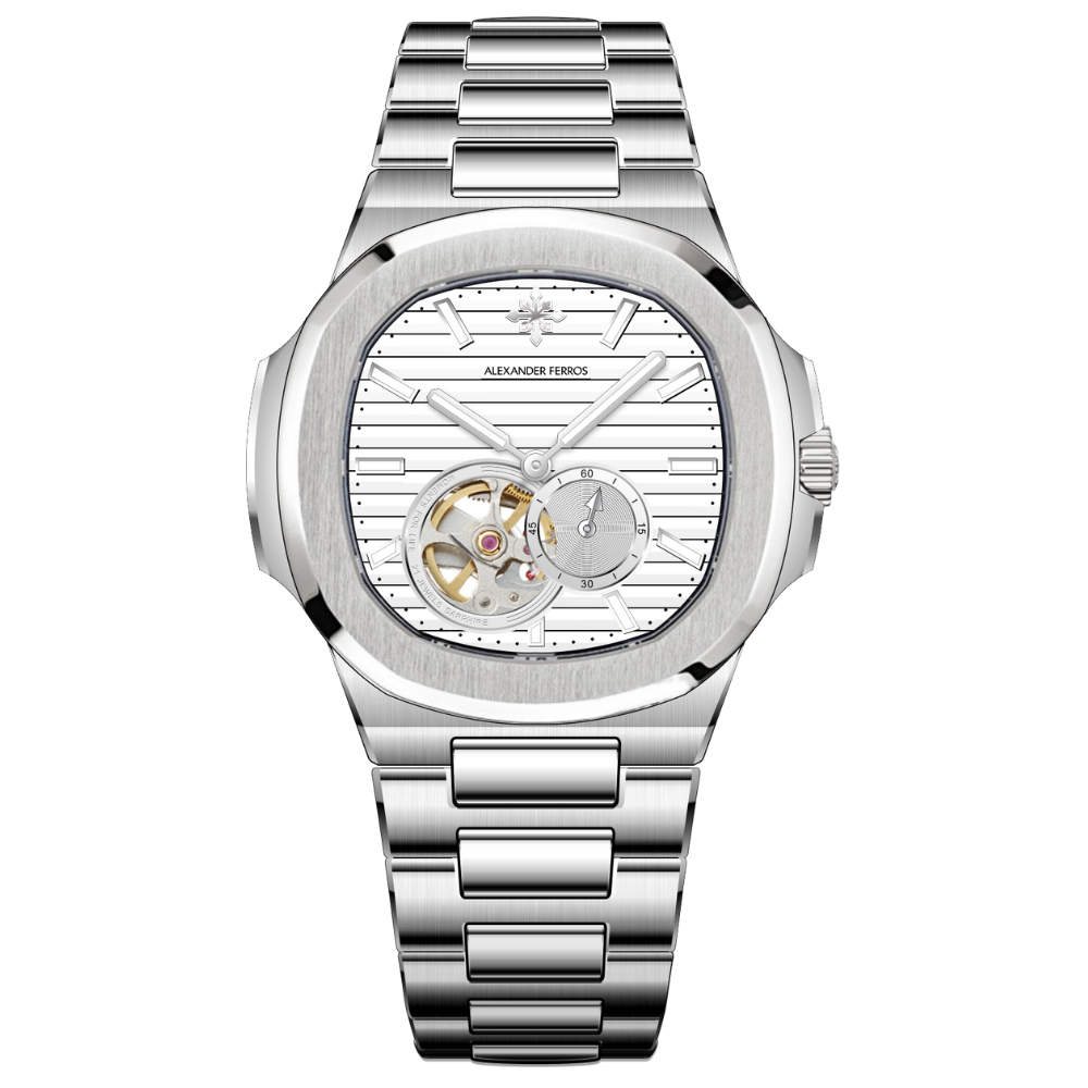 Alexander Ferros 6312 là sự kết hợp hài hòa giữa tinh hoa cơ khí và gu thẩm mỹ đương đại. Với thiết kế vỏ thép không gỉ sang trọng, mặt số xanh lam được trang trí bằng các đường kẻ ngang tạo chiều sâu thị giác, mẫu đồng hồ này mang đến cảm giác trẻ trung nhưng vẫn đầy đẳng cấp.