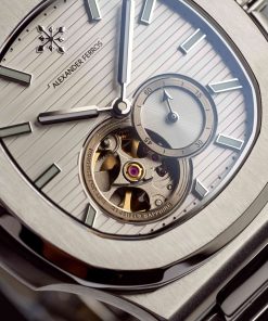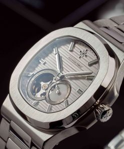 Nổi bật là cửa sổ open-heart để lộ chuyển động cơ học tinh xảo cùng mặt phụ hiển thị 24h, cho thấy sự chỉn chu trong từng chi tiết. Cọc số và kim được chế tác sắc nét, phủ dạ quang giúp dễ dàng quan sát trong điều kiện thiếu sáng.