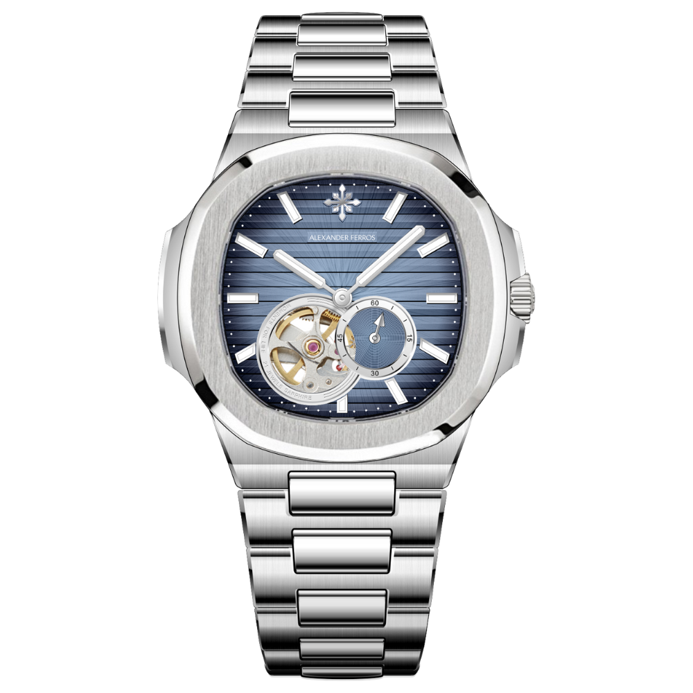 Alexander Ferros 6312 là sự kết hợp hài hòa giữa tinh hoa cơ khí và gu thẩm mỹ đương đại. Với thiết kế vỏ thép không gỉ sang trọng, mặt số xanh lam được trang trí bằng các đường kẻ ngang tạo chiều sâu thị giác, mẫu đồng hồ này mang đến cảm giác trẻ trung nhưng vẫn đầy đẳng cấp.