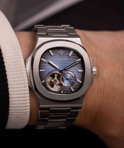 Nổi bật là cửa sổ open-heart để lộ chuyển động cơ học tinh xảo cùng mặt phụ hiển thị 24h, cho thấy sự chỉn chu trong từng chi tiết. Cọc số và kim được chế tác sắc nét, phủ dạ quang giúp dễ dàng quan sát trong điều kiện thiếu sáng.