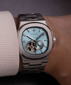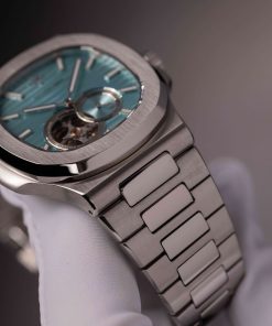 Nổi bật là cửa sổ open-heart để lộ chuyển động cơ học tinh xảo cùng mặt phụ hiển thị 24h, cho thấy sự chỉn chu trong từng chi tiết. Cọc số và kim được chế tác sắc nét, phủ dạ quang giúp dễ dàng quan sát trong điều kiện thiếu sáng.