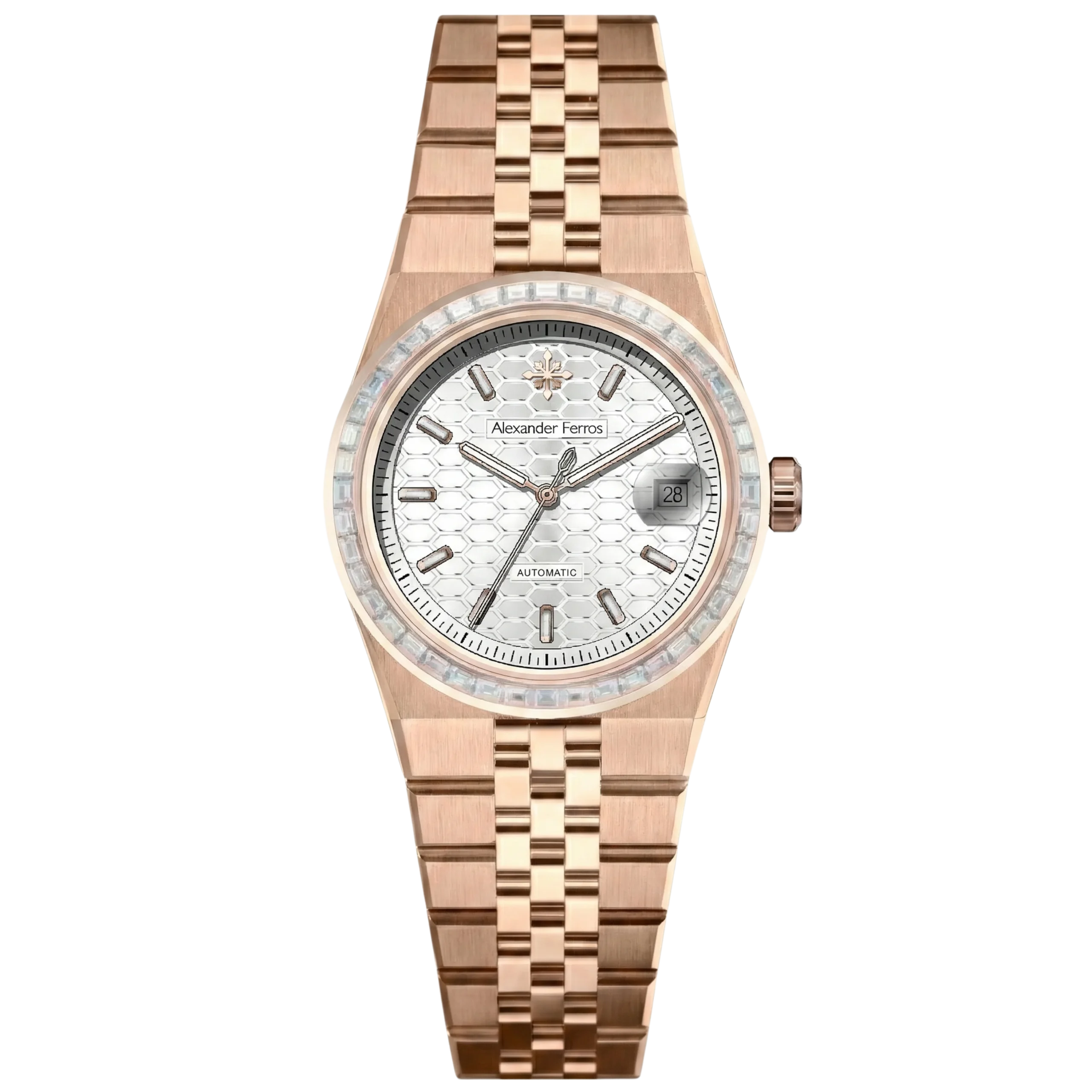 Alexander Ferros 8181R là dòng đồng hồ cao cấp nổi bật với thiết kế demi sang trọng và viền đá đính tinh xảo. Bộ máy Nhật Bản bền bỉ cùng kính sapphire chống trầy giúp sản phẩm vừa thời trang vừa chất lượng, lý tưởng cho những ai yêu sự đẳng cấp và tinh tế.