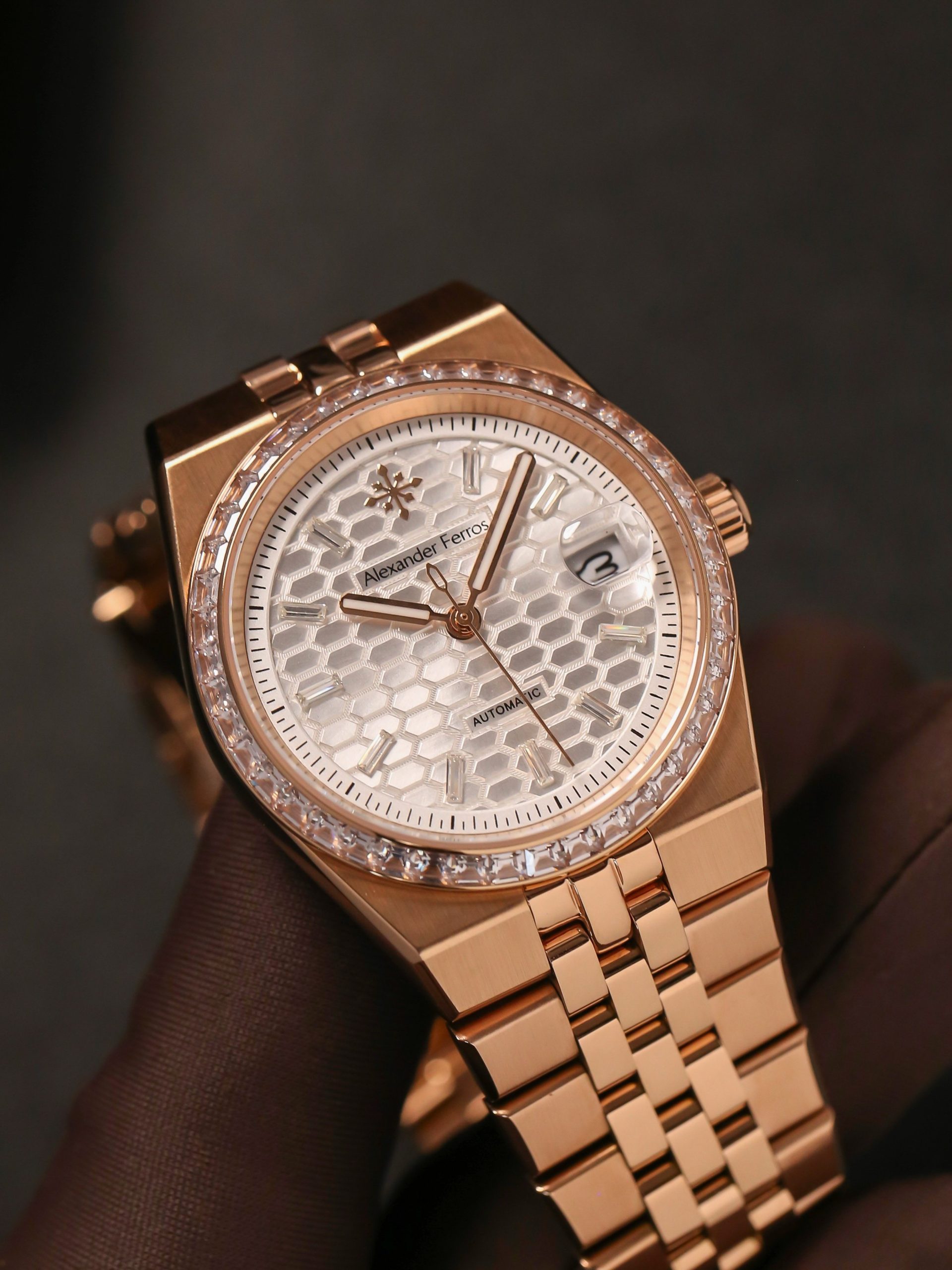 Alexander Ferros 8181R/022 là mẫu đồng hồ sang trọng dành cho những ai yêu thích vẻ đẹp tinh tế. Thiết kế dây demi vàng hồng cao cấp kết hợp mặt số bạc hoặc nâu thanh lịch, viền đá đính tỉ mỉ tạo điểm nhấn nổi bật. Bộ máy Nhật Bản vận hành ổn định, cùng kính sapphire chống trầy xước giúp sản phẩm bền bỉ theo thời gian. Đây là lựa chọn hoàn hảo cho cả công sở lẫn sự kiện.