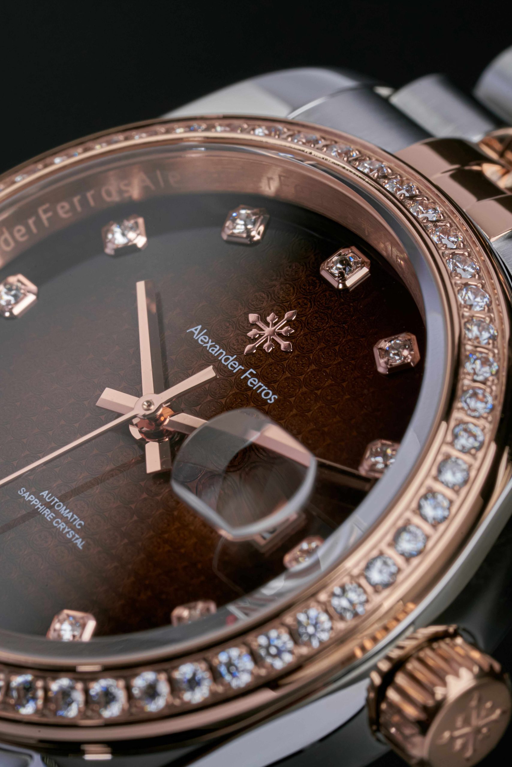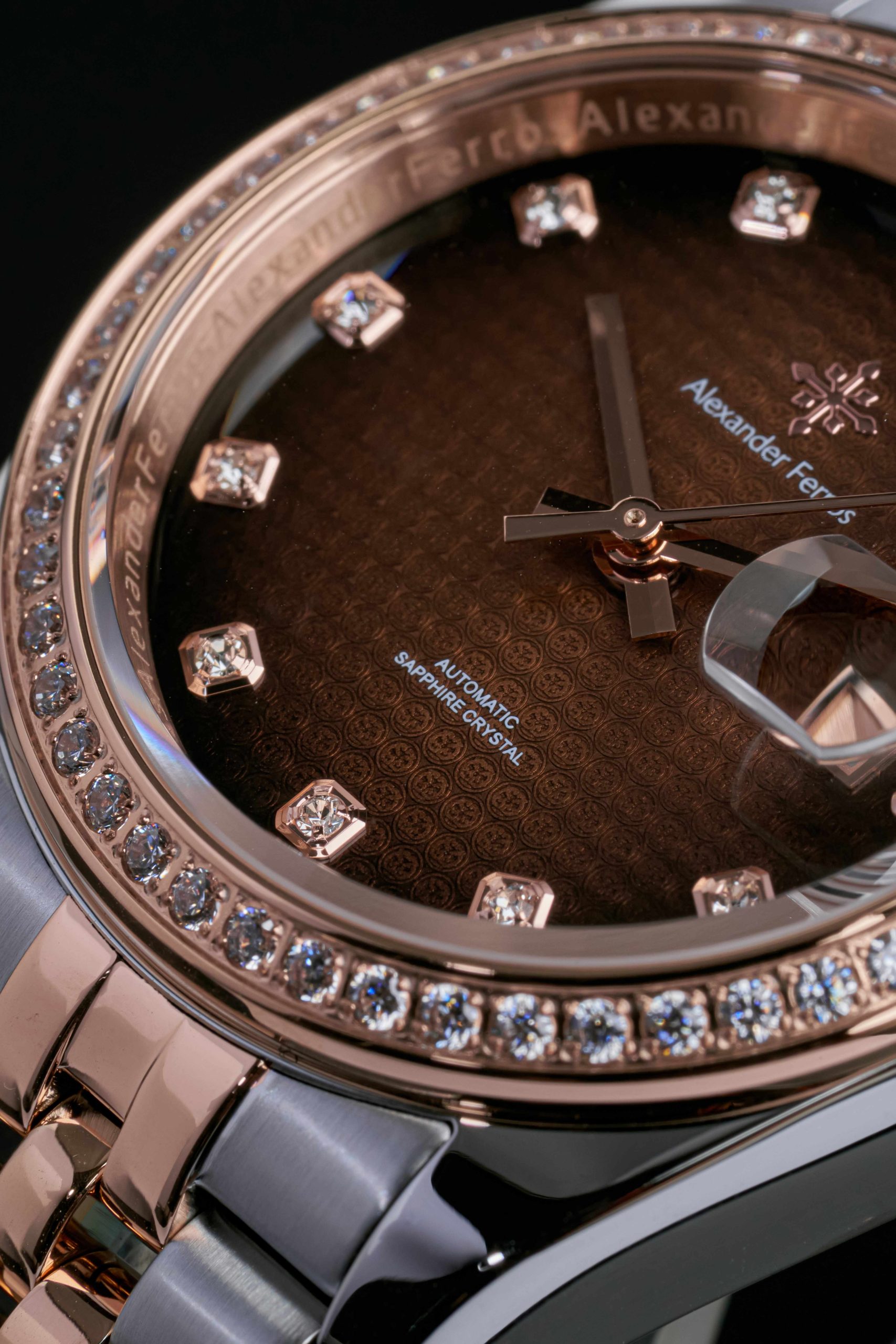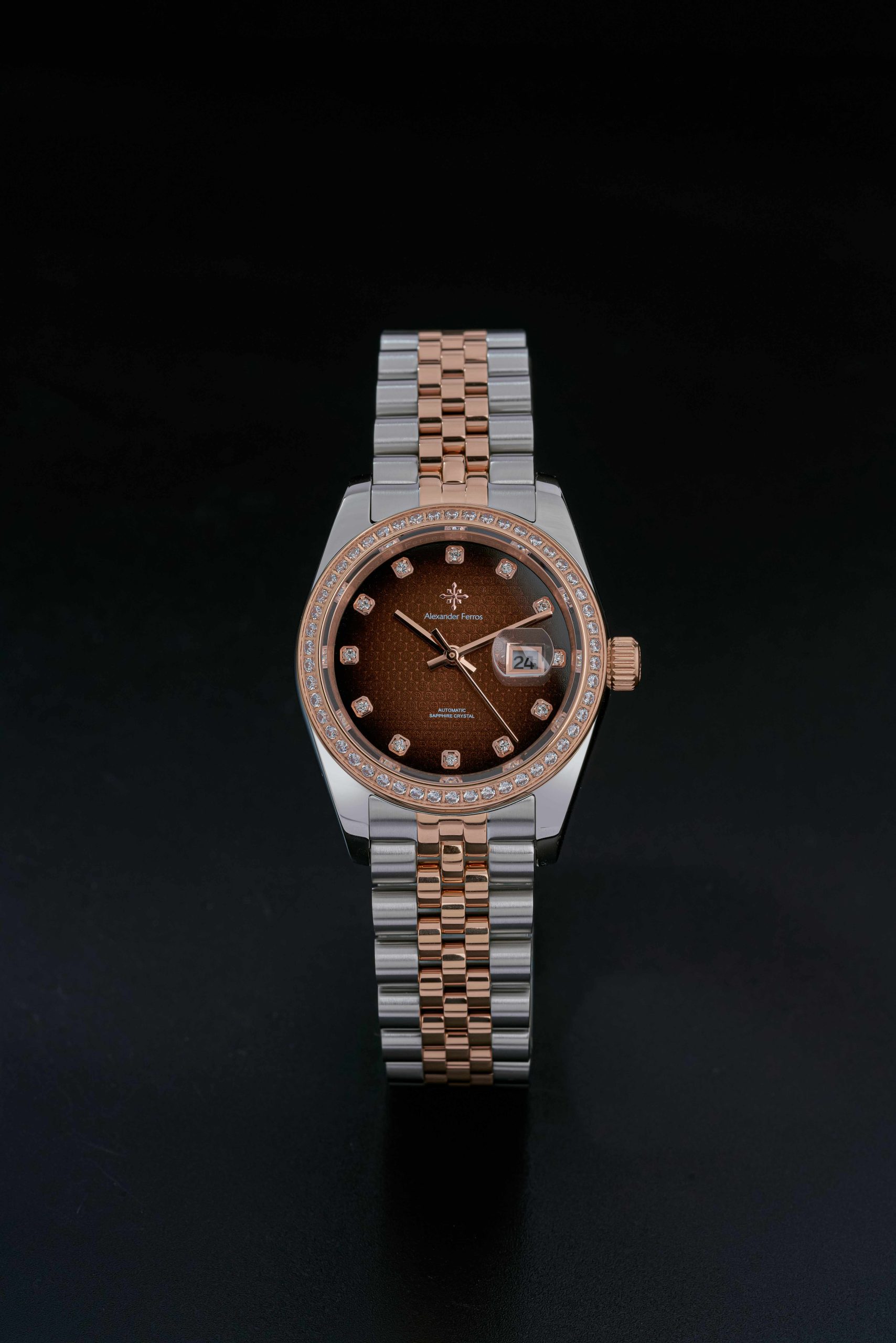 Đồng hồ Alexander Ferros model 8201D là bộ sưu tập đồng hồ mang phong cách thanh lịch và sang trọng. Thiết kế demi vàng hồng phối bạc cùng viền đá tạo nên vẻ ngoài cuốn hút.