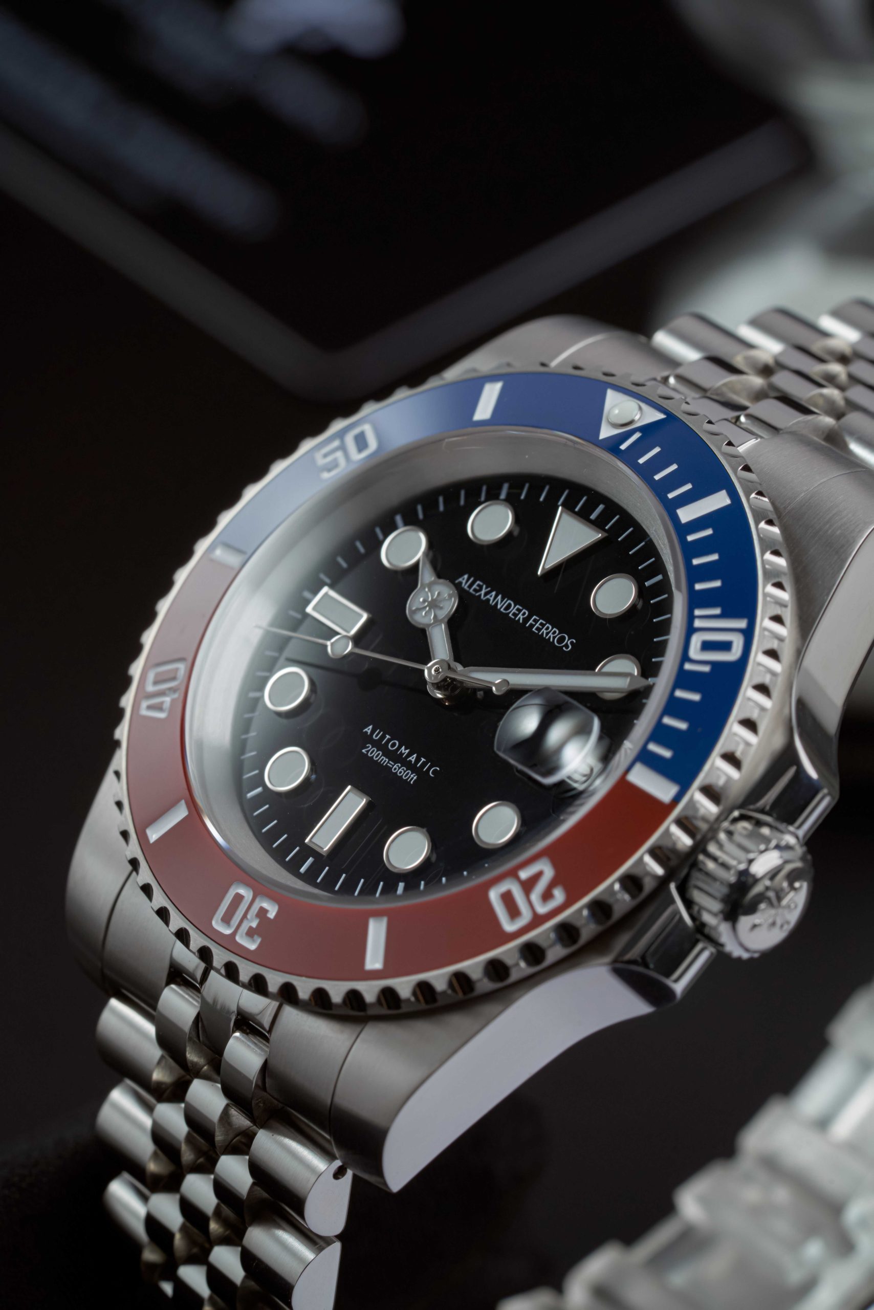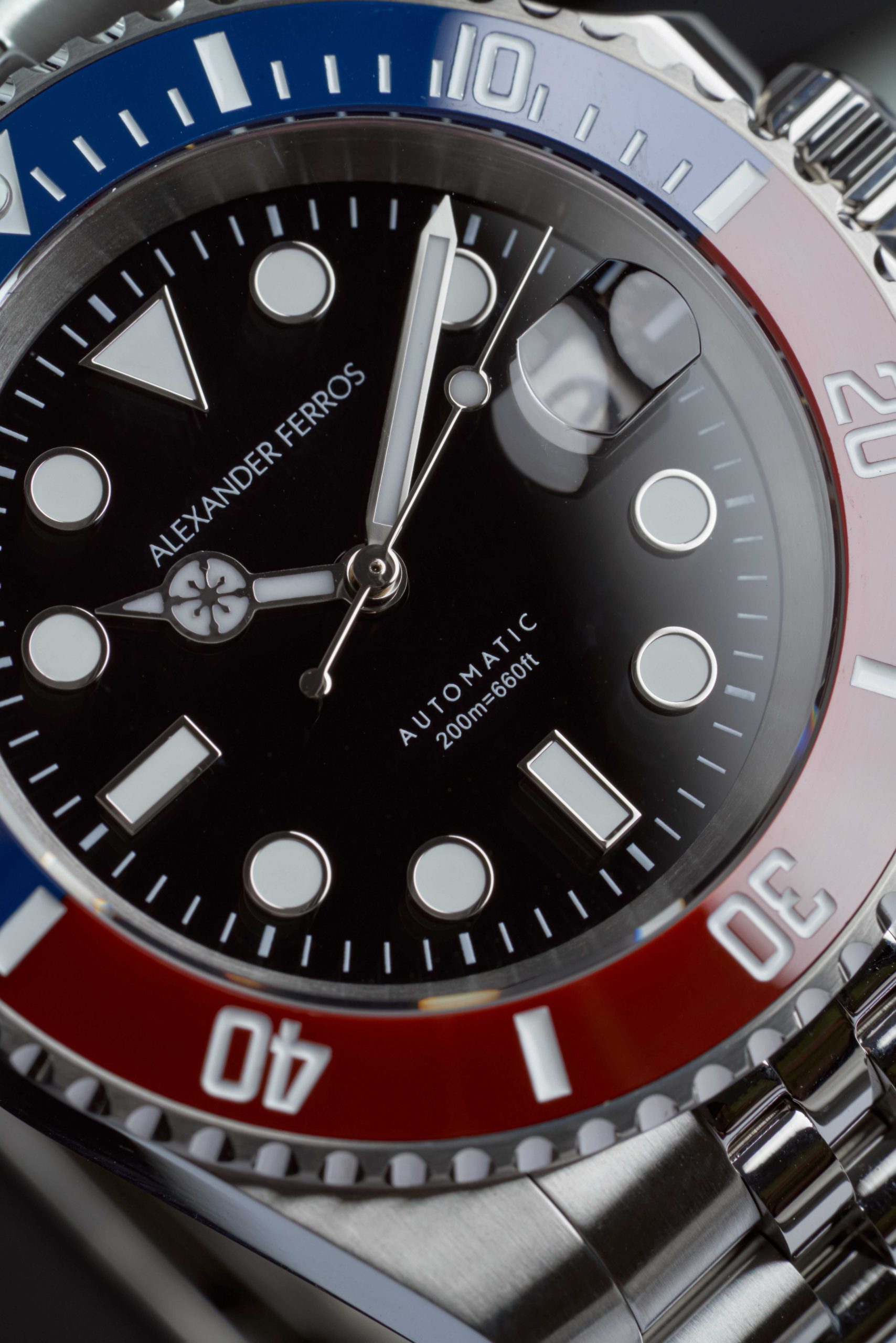 Alexander Ferros 8352 – Mẫu đồng hồ cơ thể thao đỉnh cao với khả năng chống nước 200M. Nổi bật với kính lúp lịch ngày, dạ quang siêu sáng và các phối màu kinh điển.