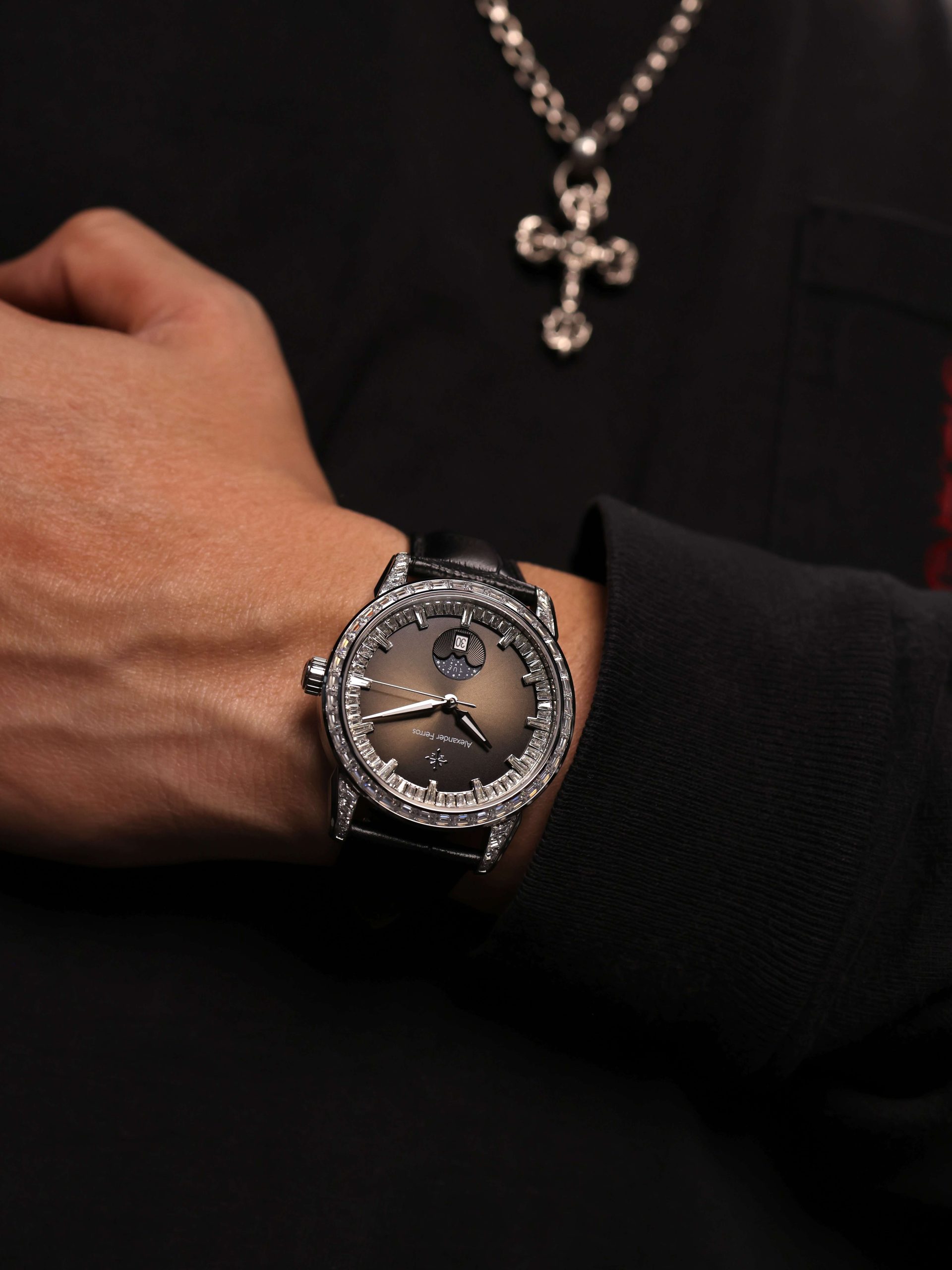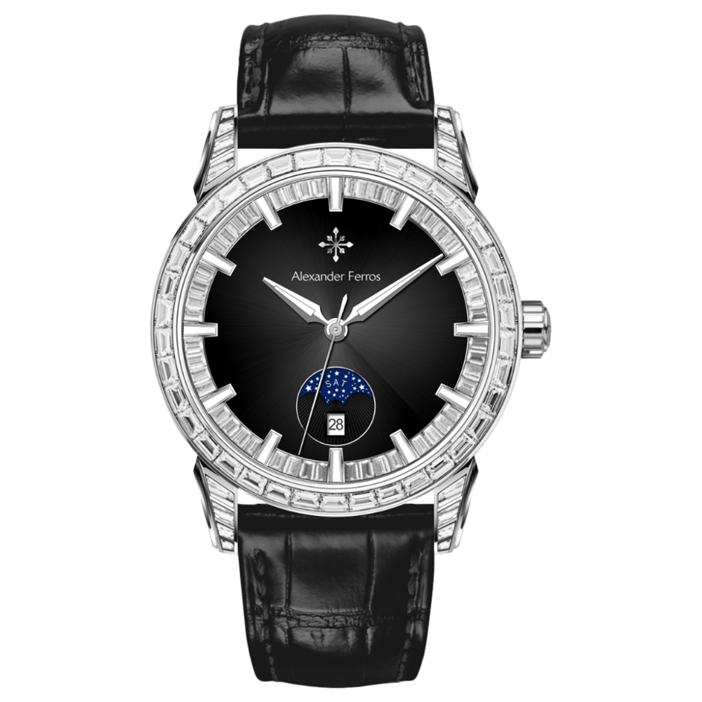 Thiết kế đính đá là điểm nhấn đặc biệt, mặt kính sapphire chống xước, khung vỏ thép không gỉ mạ PVD cao cấp giúp nâng cao độ bền và vẻ sang trọng. Alexander Ferros 9081 không chỉ là công cụ đo thời gian mà còn là biểu tượng của gu thẩm mỹ và đẳng cấp cá nhân, phù hợp trong mọi dịp từ công sở đến sự kiện sang trọng.