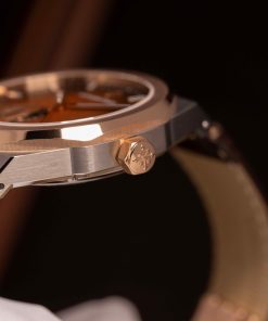 Vỏ được chế tác từ thép không gỉ cao cấp, mang đến sự bền bỉ và cảm giác chắc chắn khi đeo. Viền bezel cách điệu với các đường cắt góc cạnh, tăng thêm vẻ nam tính và năng động.