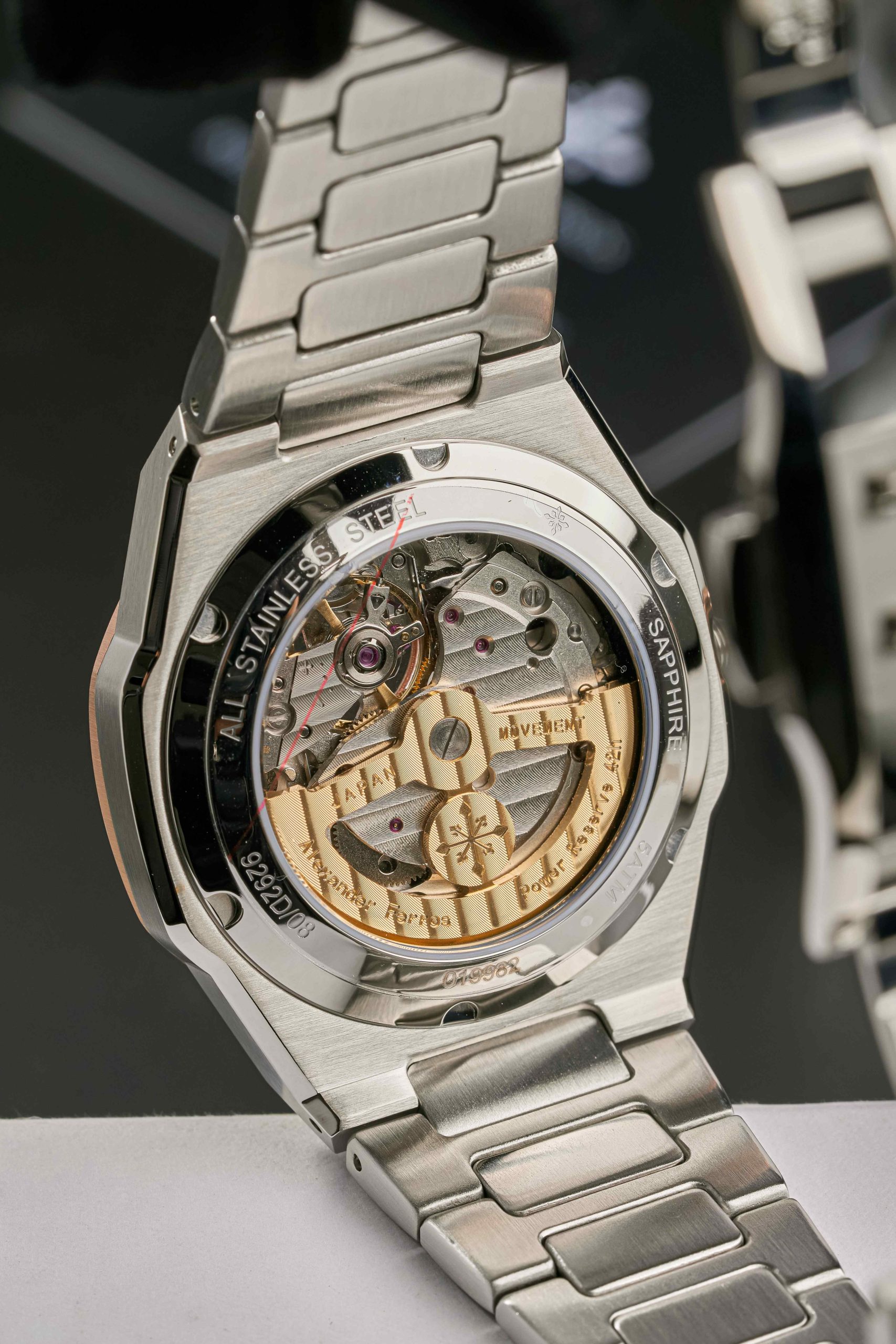 Vỏ được chế tác từ thép không gỉ cao cấp, mang đến sự bền bỉ và cảm giác chắc chắn khi đeo. Viền bezel cách điệu với các đường cắt góc cạnh, tăng thêm vẻ nam tính và năng động.