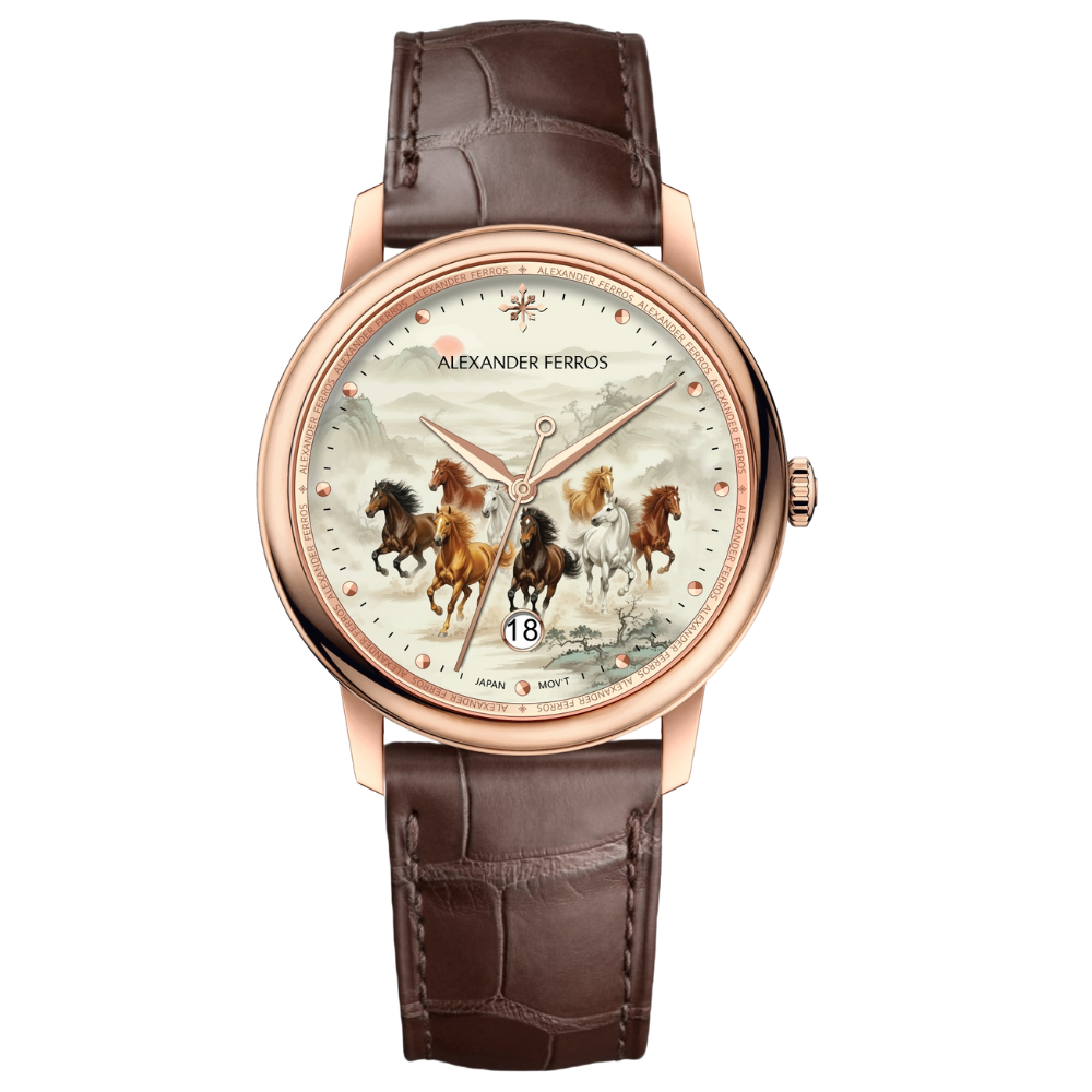 Siêu phẩm đặc biệt mang tên “Bát Mã Truy Phong” là lời chào năm mới đầy khí thế từ Alexander Ferros – lấy cảm hứng từ hình tượng 8 con ngựa phi nước đại, biểu trưng cho phát tài, phát lộc, may mắn và thành công.