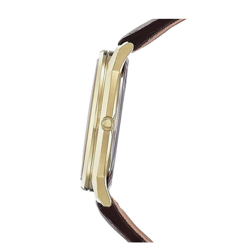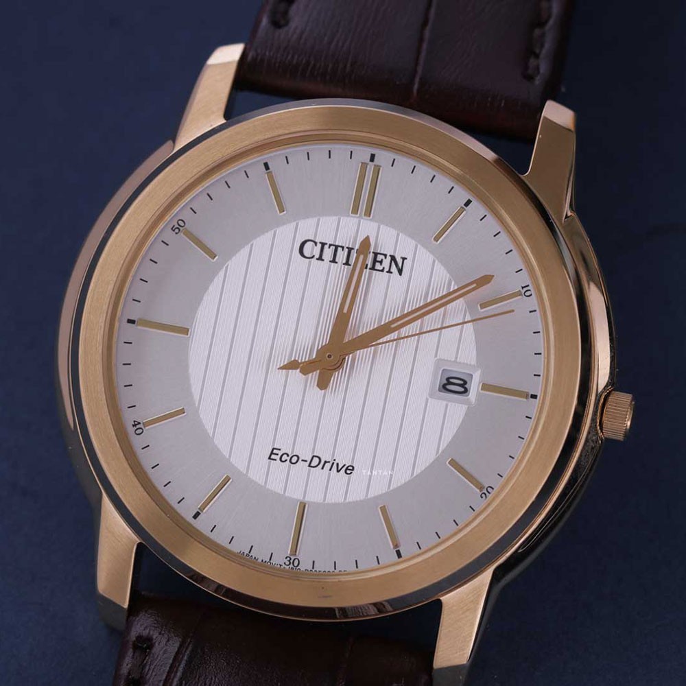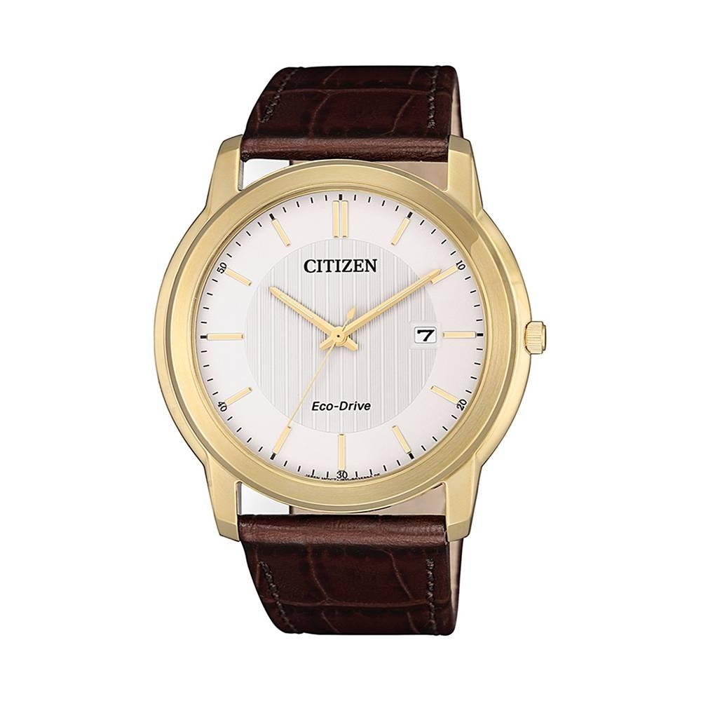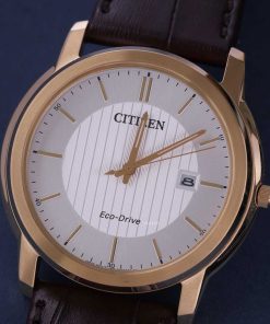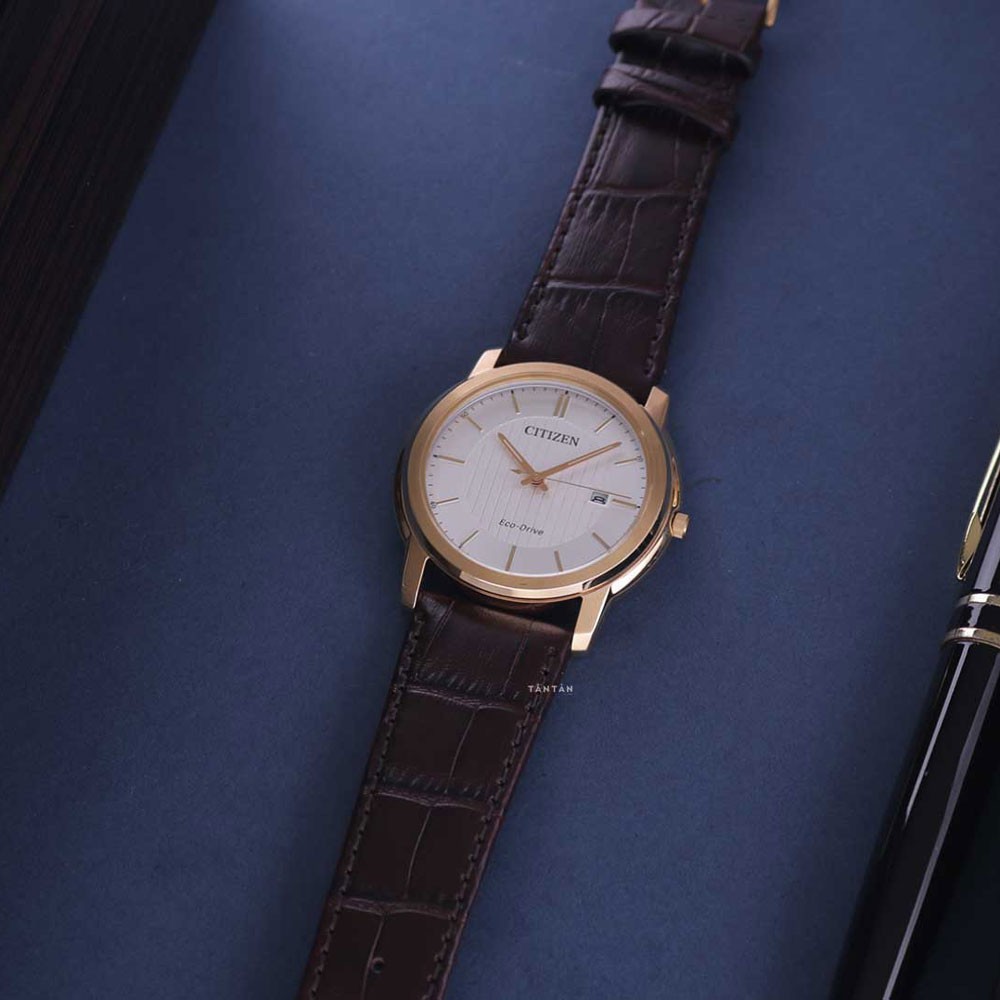 Nhắc đến những thiết đề đồng hồ nam tinh xảo và thanh lịch, bạn không thể bỏ qua những thiết kế đến từ thương hiệu Citizen. Nổi bật trong số đó là mẫu đồng hồ Citizen AW1212-10A với tông màu vàng, nâu, trắng trang nhã, cực kỳ phù hợp với những anh chàng theo đuổi phong cách thanh lịch. Đặc biệt, chiếc đồng hồ này còn được trang bị công nghệ vận hành bằng ánh sáng độc quyền Eco-Drive, mang đến cho phái mạnh trải nghiệm sử dụng tuyệt vời nhất.
