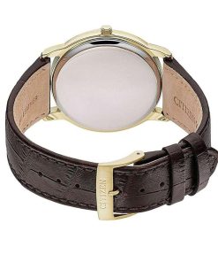 Ngoài ra, chiếc đồng hồ nam chính hãng Citizen này còn được trang bị dây đeo bằng chất liệu da cao cấp thuộc nâu, giúp người đeo thêm phần trẻ trung và cuốn hút. Phần thân dây được dập vân cá sấu độc đáo, dọc thân có hai đường chỉ thẳng tắp tạo độ chắc chắn cho dây đeo. Cuối dây đeo là phần khóa cài nhỏ gọn thường thấy, có thể dễ dàng tháo ra – lắp vào trong quá trình sử dụng.