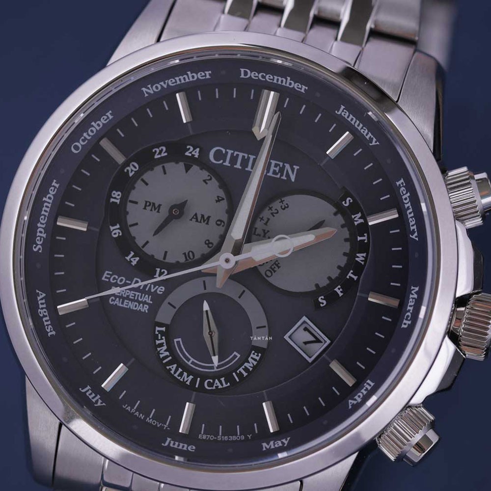 Citizen BL8150-86L mang phong cách pha lẫn giữa cổ điển và hiện đại với chức năng Chronograph đẳng cấp được hoàn thiện tỉ mỉ. Đồng hồ còn được trang bị đa dạng chức năng như lịch ngày, tháng, lịch vạn niên, sử dụng màu xanh dương – trắng bạc chủ đạo kết hợp cùng bộ máy Eco-Drive hoạt động bền bỉ, chính xác, đây chắc hẳn là chiếc đồng hồ dành cho các các chàng trai hiện đại, năng động.