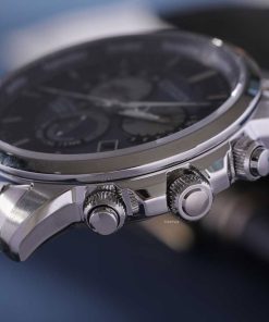 Ở cạnh phải là 3 nút chức năng quen thuộc của đồng hồ Chronograph được khắc rãnh tinh xảo. Ở góc 2 giờ là nút bấm giờ Start/Stop và góc 4 giờ là nút bấm Reset. Núm chỉnh giờ được đặt ở cạnh phải tại góc 3 giờ như thường lệ.