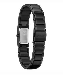Vỏ và dây thép không gỉ được hoàn thiện với công nghệ gia công tinh xảo theo dạng lắc tay, kết hợp với những viên kim cương được đính kết thủ công tạo nên bề mặt chống trầy xước tốt và vẻ đẹp lấp lánh bền vững theo thời gian sử dụng lâu dài. Thiết kế dạng lắc tay được tô điểm kim cương mang đến cảm giác thanh thoát và sự quyến rũ tuyệt đối, hoàn hảo cho cuộc sống hàng ngày và các dịp đặc biệt đòi hỏi sự cá tính. Thiết kế thanh lịch bí ẩn với khả năng chống nước WR30 ôm khít cổ tay với sự cân bằng hoàn hảo giữa kim cương đen lấp lánh và thoải mái, phù hợp với phong cách nữ tính của những người phụ nữ có gu thẩm mỹ cá tính và yêu thích sự kết hợp giữa thanh thoát và quyến rũ.