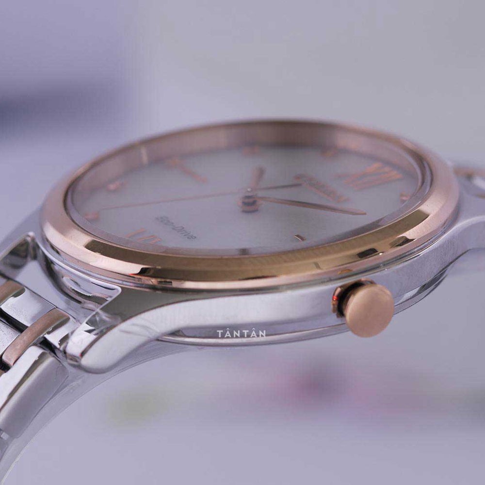 Với những ưu điểm kể trên, Citizen EM0506-77A sẽ là người bạn đồng hành hoàn hảo cho các quý cô sự thanh lịch, thời thượng và tinh tế. Với tông màu bạc – vàng hồng nổi bật, chiếc đồng hồ Citizen Eco-Drive chính hãng này sẽ là điểm nhấn thú vị giúp các nàng luôn tỏa sáng khi kết hợp với bất cứ trang phục nào trong tủ đồ, từ những bộ váy bồng bềnh đến trang phục công sở nghiêm túc.