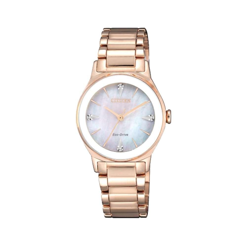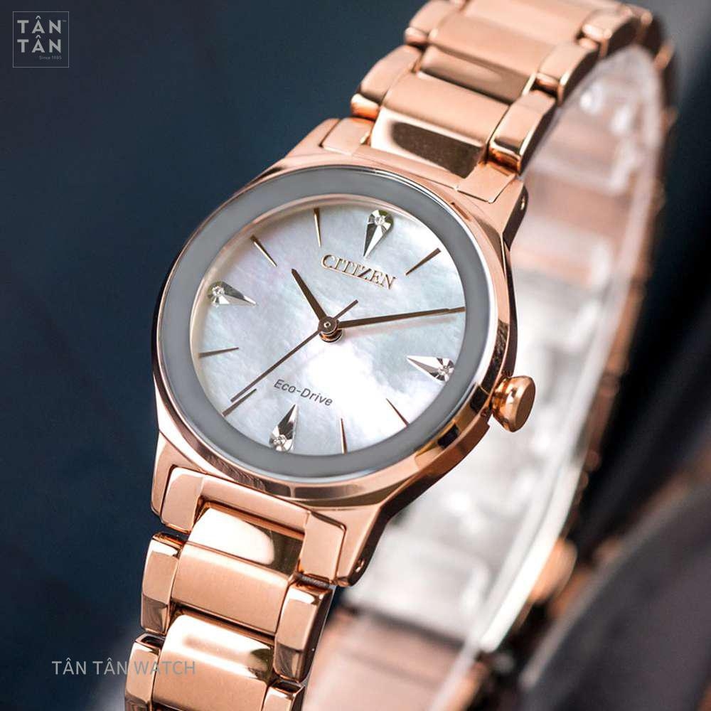 Trong thế giới đồng hồ Citizen dành cho phái đẹp tinh tế, một chiếc đồng hồ không chỉ đơn thuần là phụ kiện thời trang mà còn là biểu tượng của sự thanh thoát và phong cách nữ tính sang trọng đẳng cấp hiện đại, và Citizen Eco-Drive EM0738-80D chính là hiện thân hoàn hảo của triết lý đó. Với công nghệ Eco-Drive tiên tiến cùng thiết kế đính kim cương lấp lánh, mặt số bạc tinh khôi và kích thước 28mm thanh thoát, đây chắc chắn là lựa chọn hoàn hảo dành cho những quý cô yêu thích sự tinh tế và phong cách thép kim cương đầy quyến rũ.