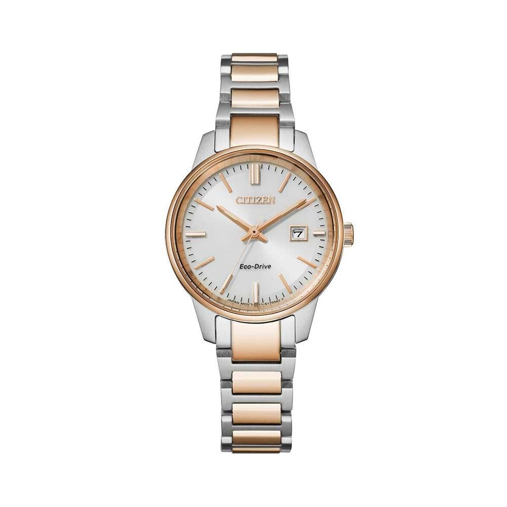 Citizen EW2596-89A có thiết kế sang trọng với sự phối hợp nổi bật của tông màu trắng bạc của chất liệu thép không gỉ xuyên suốt và màu vàng hồng demi lên các chi tiết của mặt số, bộ vỏ hay dây đeo. Chiếc đồng hồ mang đến cho tổng thể vẻ hiện đại, trẻ trung rất dễ để phối cùng các outfit công sở lịch sự hoặc những bộ đầm dạ tiệc quan trọng.