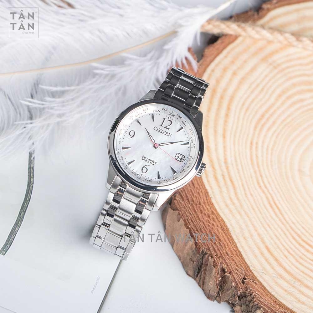 1. Mặt số Citizen FC8001-87D khảm xà cừ độc nhất với chức năng World Time