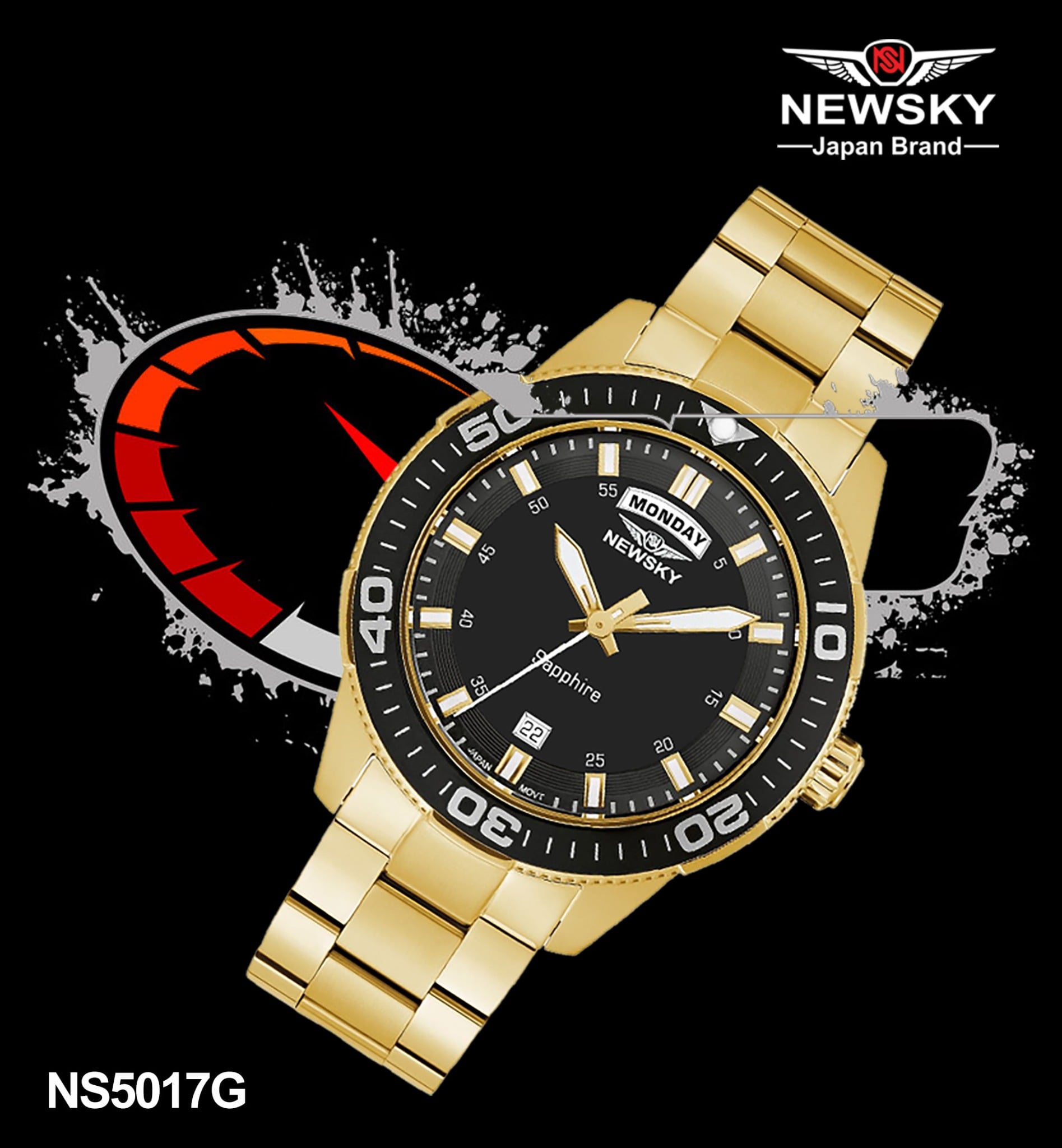 ĐỒNG HỒ NEWSKY NS5017G.S03 Nam máy quartz kính sapphire size 41mm 3ATM chính là sự lựa chọn hoàn hảo cho những quý ông, quý bà muốn tìm kiếm sự cân bằng giữa bản năng chinh phục đại dương và phong thái lịch lãm của nhịp sống hiện đại.