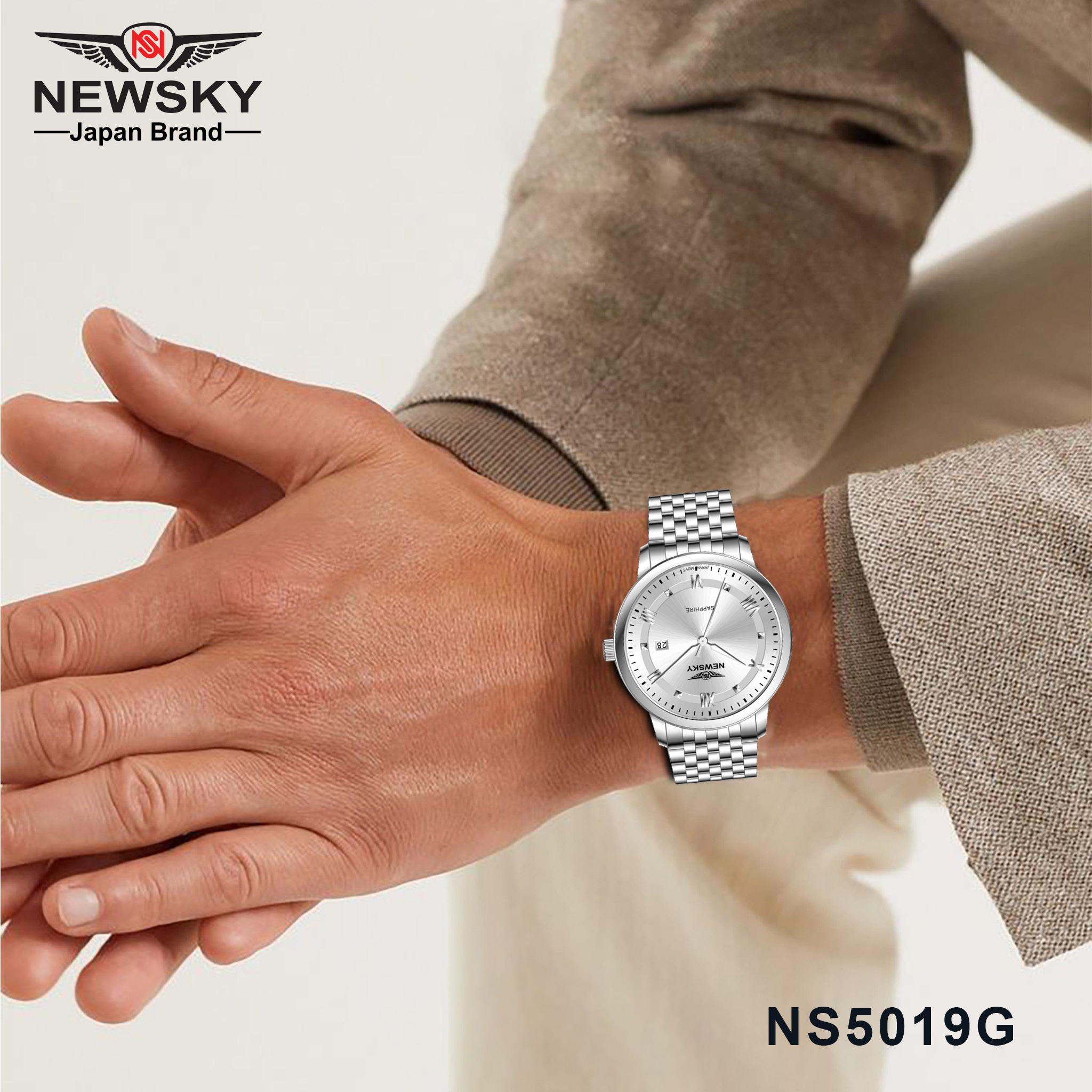 - Sản phẩm chính hãng 100%: Bwatchstore cam kết phân phối ĐỒNG HỒ NEWSKY NS5019G.S01 Nam máy quartz kính sapphire size 40mm 3ATM nhập khẩu chính ngạch, đầy đủ hộp sổ, thẻ bảo hành chính hãng và tem chống hàng giả rõ ràng từ hãng.