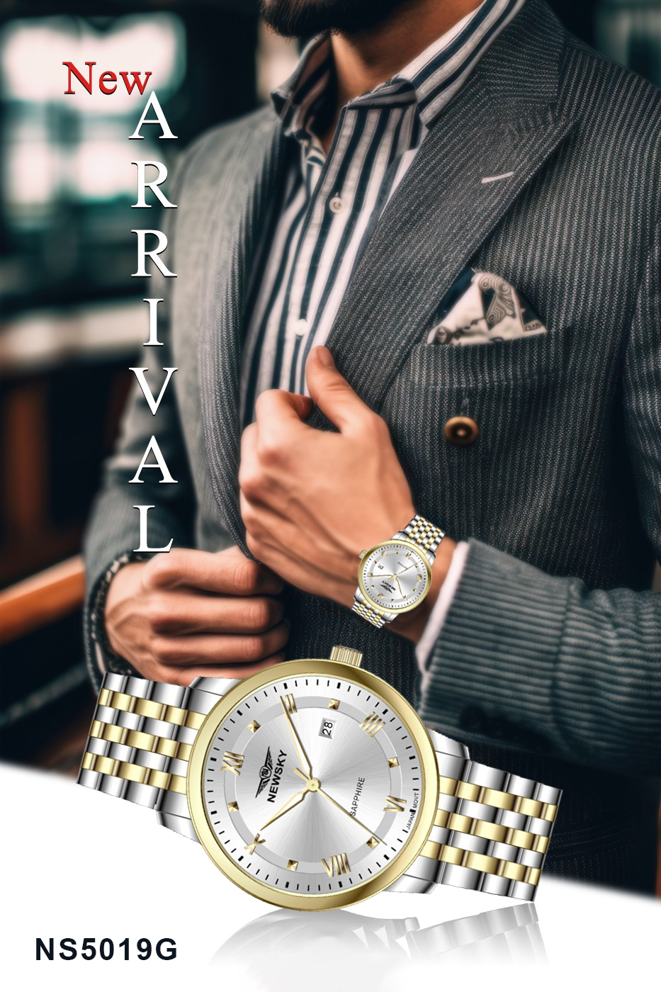 - Sản phẩm chính hãng 100%: Bwatchstore cam kết phân phối ĐỒNG HỒ NEWSKY NS5019G.S03 Nam máy quartz kính sapphire size 40mm 3ATM nhập khẩu chính ngạch, đầy đủ hộp sổ, thẻ bảo hành chính hãng và tem chống hàng giả rõ ràng từ hãng.