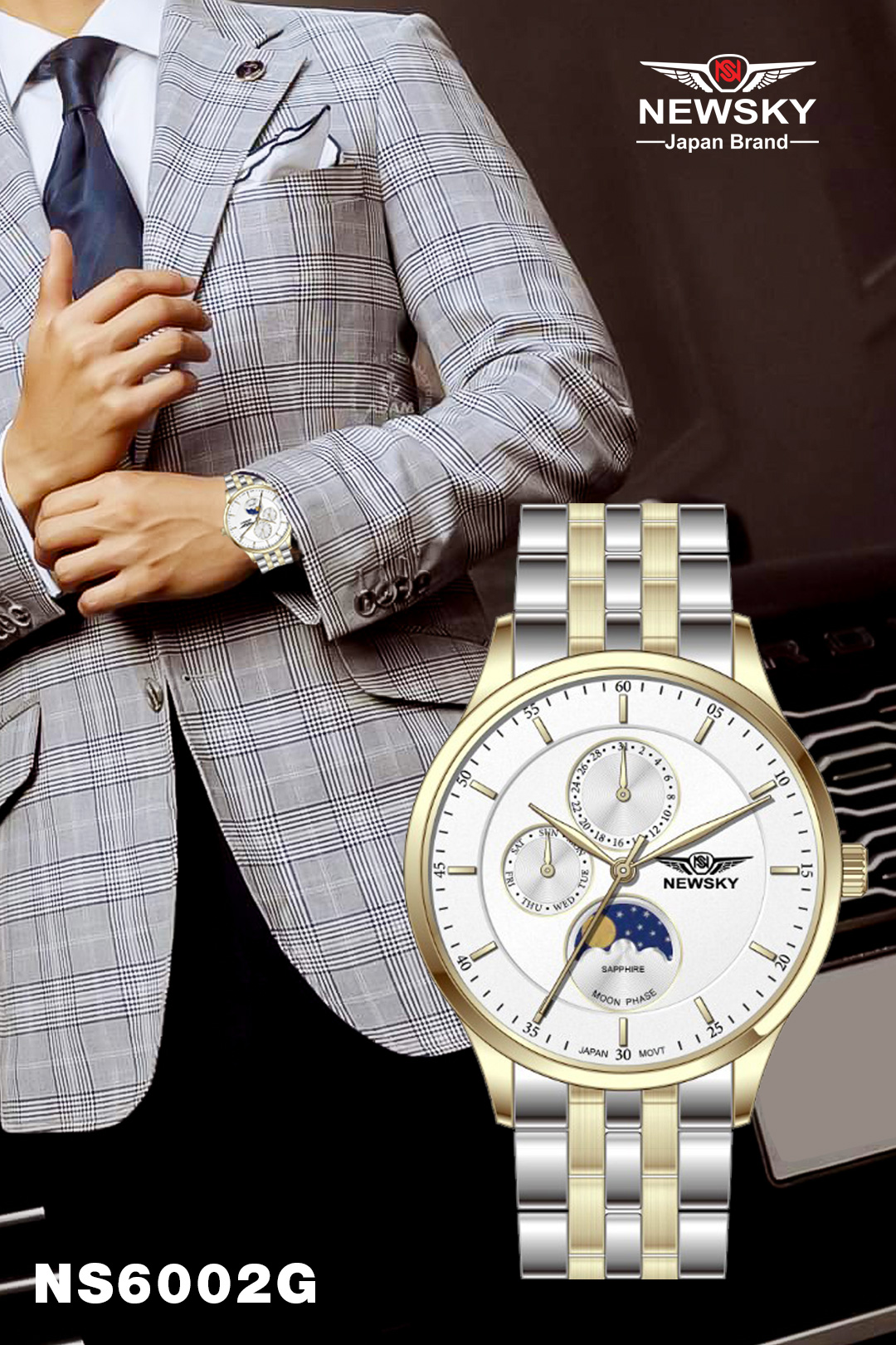 - Sản phẩm chính hãng 100%: Bwatchstore cam kết phân phối ĐỒNG HỒ NEWSKY NS6002G.S03 Nam máy quartz Kính sapphire Size 40mm 5ATM nhập khẩu chính ngạch, đầy đủ hộp sổ, thẻ bảo hành chính hãng và tem chống hàng giả rõ ràng từ hãng.