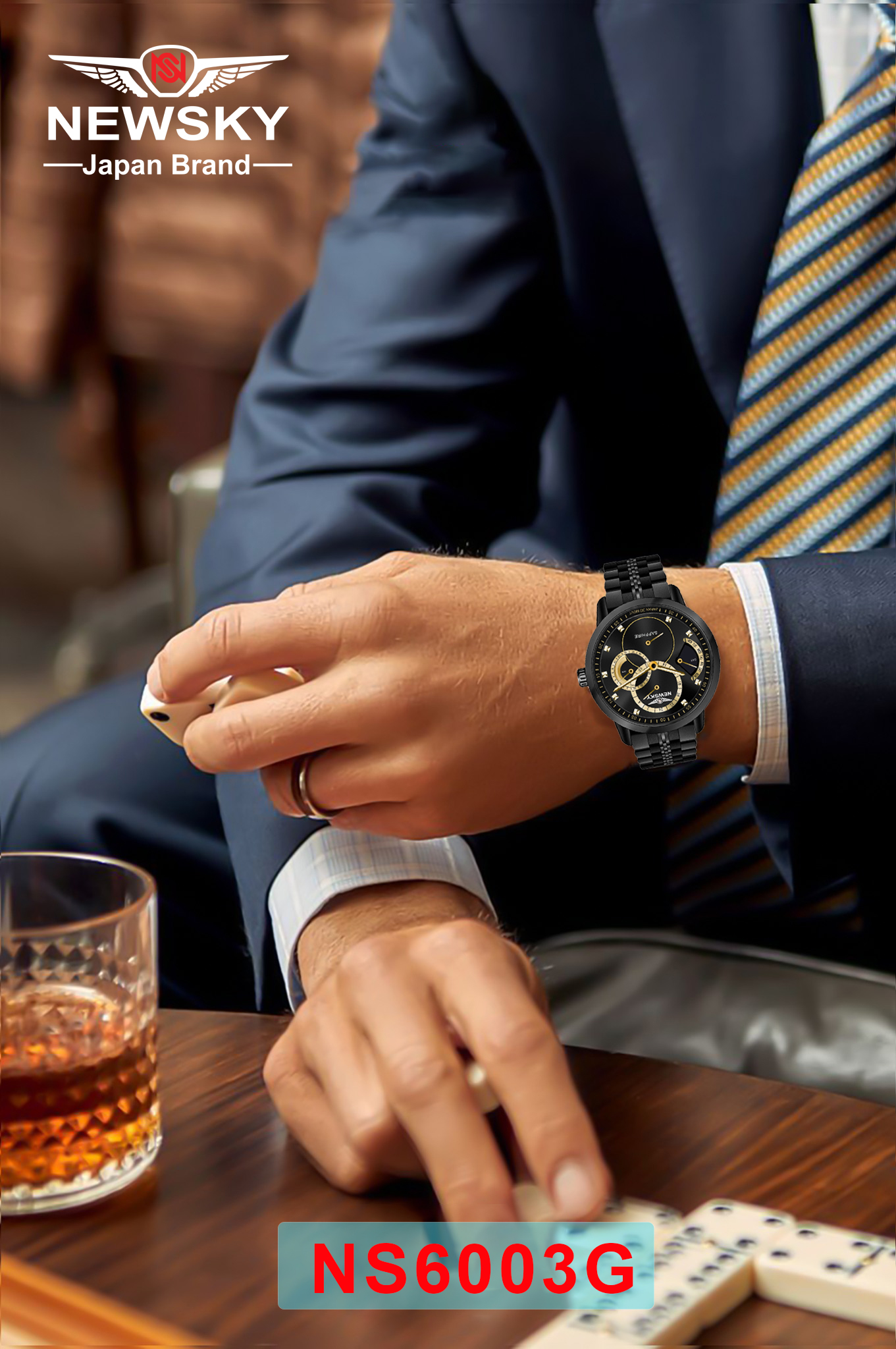 ĐỒNG HỒ NEWSKY NS6003G.S04 Nam máy quartz kính sapphire size 41mm 3ATM chính là sự lựa chọn hoàn hảo cho những quý ông, quý bà muốn tìm kiếm sự cân bằng giữa bản năng chinh phục đại dương và phong thái lịch lãm của nhịp sống hiện đại.
