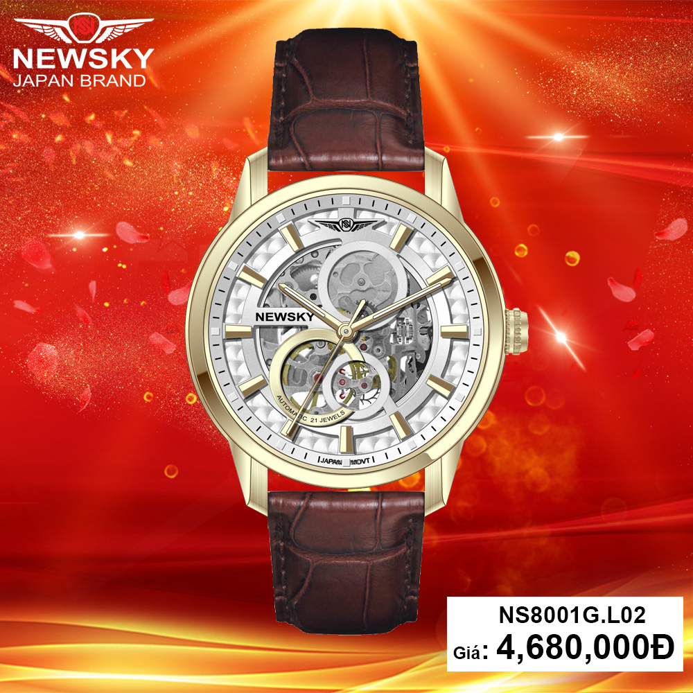 - Sản phẩm chính hãng 100%: Bwatchstore cam kết phân phối ĐỒNG HỒ NEWSKY NS8001G.L02 Nam máy automatic Kính sapphire Size 41mm 5ATM nhập khẩu chính ngạch, đầy đủ hộp sổ, thẻ bảo hành chính hãng và tem chống hàng giả rõ ràng từ hãng.