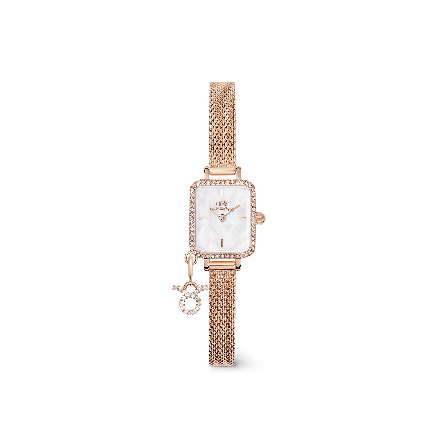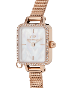 Bạch Dương đầy tham vọng, Thiên Bình lãng mạn, Song Ngư thi vị—hãy thêm chút cá tính vào trang phục của bạn với chiếc đồng hồ Quadro Mini Crystal Zodiac. Được viền bởi các viên pha lê dọc theo vành bezel phát sáng, mặt số khảm xà cừ trắng thật mang đến vẻ lấp lánh rực rỡ cho cổ tay bạn. Hãy chọn cung hoàng đạo của bạn và thể hiện những yếu tố làm nên con người bạn—hoặc thay đổi để tượng trưng cho một khoảnh khắc hay người đặc biệt khác: cả dây đeo lưới mạ vàng hồng và mặt dây chuyền pha lê đều có thể thay thế cho nhau.